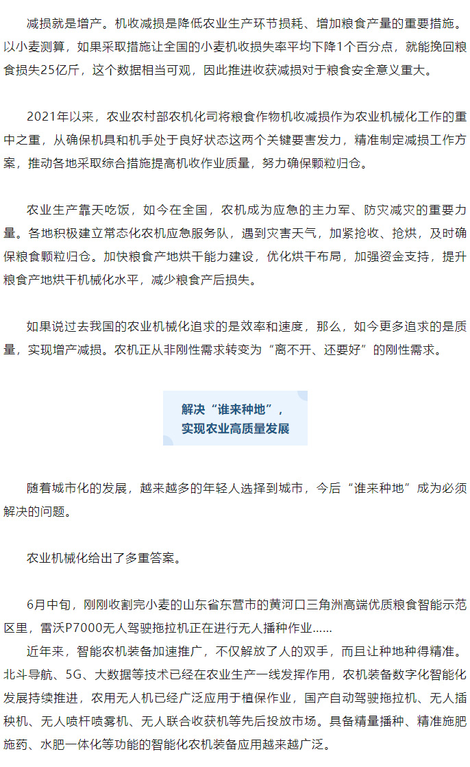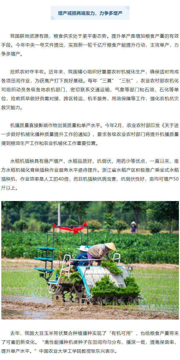 農業機械化為糧食增產保駕護航