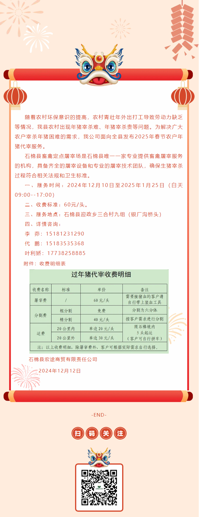 年豬代宰業務服務公告